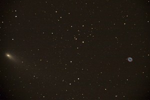 Object: M57 Location: My-Spot Observatory Date(s): May 14, 19, 23, 24, 28, 30, & 31, 2010 (7 Nights) Scope: Vixen VC200L w/Focal Reducer Mount: Losmandy G-11 Guiding: ST80 OTA with QHY5 Camera: QHY8Pro Exposure: 52 x 300 Secs (RGB), 372 x 120 Secs (RGB), 98 x 600 Secs (Ha) (Total 33 Hours, 4 Mins) 254 x 120 Sec (8Hrs 28Mins) Lights (128 Flats, 128 Bias) Processing: Nebulosity and fitswork4, Stacked in DSS and final processing with PWP The Story: O.K. So I went a little nutts with this one. My goal was to reveal M57's the faint outer halo. After more then 33 Hours of exposure time I could declare success! Much of the imaging time was spent during the time of the full moon so even with the narrowband (12nm) Ha filter, there wasn't as much depth as I had hoped for. One strange issue was that the central star has all but disappeared in all of the processing.