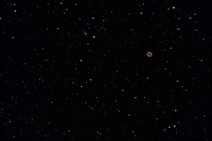 Object: M57 - The Ring Nebula Date: August 4, 2001 Exposure(s): 18 Min, 18 Min Film: Kodak LE400 Equipement: 10" f/10 Meade OTA w/GEG @ f/6.3 on Losmandy G-11 Guiding: SBIG ST-4 Hardware & Software: HP S20xi film scanner, Hamrick Software's VueScan, The raw image scans were processed, cropped, and then digitally stacked using Picture Window. Image Info: My image of M57 really suprised me do to the fact that I took it under my light polluted skies and during a full moon! This image was one of the first times I really saw a grain reduction in an image by stacking. The stars do not show any tracking problems, further confirming that I have made useful improvements to my G-11. The 14.7 mag central star in very clear. This is a BIG improvement over my first M57 image. Object Info: M57, the Ring Nebula. The distance to M57 is not really well known but most estimates are in the 2000 to 3000 ly range with a few beening farther out then that.