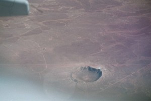 I captured this image from a low flying space craft that I was in at the time. It was only flying about 7 miles high near Winslow, AZ. Look here for more information about Meteor Crater. Photo taken with my trust X-700 and 28-105 zoom at 35000 feet and 550 MPH.