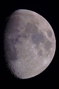 Object: Waxing Gibbous Moon Time & Date: Approx 9:02PM to 9:06PM EDT (1:02 - 1:06 UT) May 07, 2006 Exposures: 216 x 1/60 sec ISO100 Camera: Konica Minolta Maxxum 7D Equipment: 10" f/10 Meade OTA, Meade 0.63 Focal Reducer, and Losmandy G-11 GEM Guiding: None Software: WinMRW, Registar, Registax 4, and Picture Window Pro 3.5.10 Info: This is a stack of 216 (one 2Gb CF card full) RAW images I captured on the evening of May 7th 2006. Stacking was done with Registar in lots of 16 and then the resulting "sub-stacks" were stacked into a final image. The image then underwent a slight amount of wavelet processing in Registax 4. Cropping and resizing were completed in PWP.